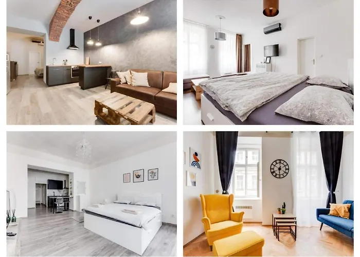 A helyszínen hűtővel, sütővel és konyhai edényekkel ellátott konyhát kínálnak. A Ypsilon Cafe és Bistro L egy 5 perces sétával elérhető. A legközelebbi repülőtér a Vaclav Havel Prague, 20 km-re az apartmantól Prágában.